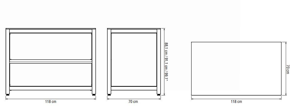 - mit Arbeitsplatte 120 x 70 cm