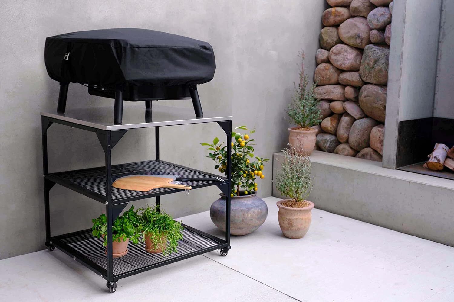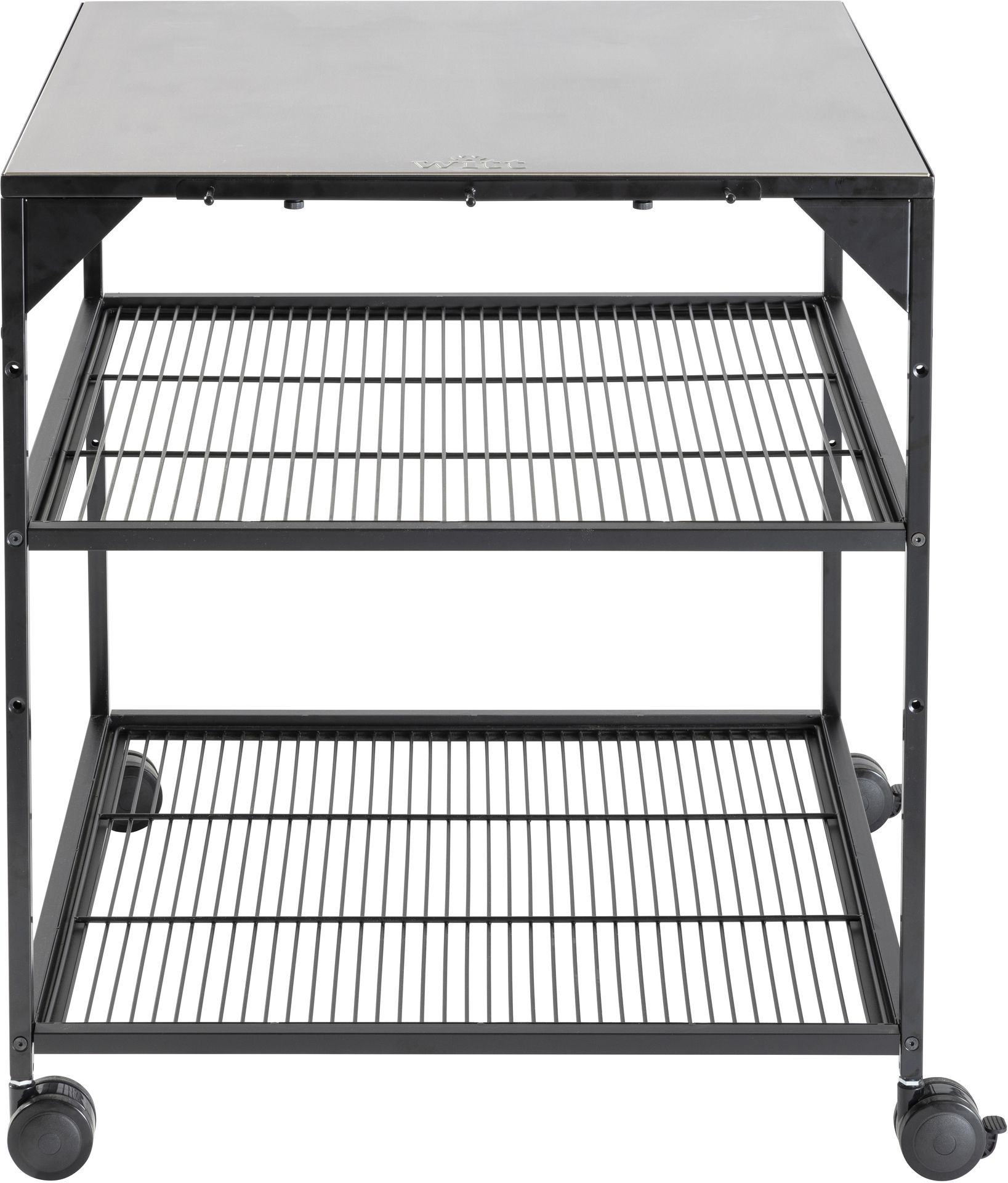 Der Pizzatisch von Witt ist eine tolle Arbeitsstation für Ihren Pizzaofen und um Ihr Zubehör organisiert und in unmittelbarer Nähe aufzubewahren. Schwarz pulverbeschichteter Stahltisch mit 4 feststellbaren Rädern und Edelstahlplatte.